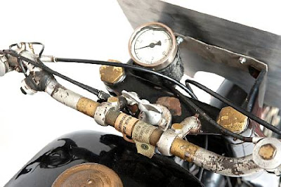 | Note: four Amal Concentric carbs, and reversed Norton gearbox. Top photo shows four Norton Commando 'Peashooter' exhausts! |